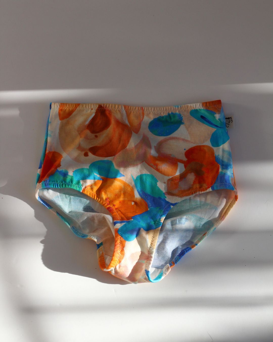 Una braga alta de algodón con una goma muy suave y flojita en la cintura y en las piernas, garantiza que te sientas super confortable y que no te apriete nada de nada.
